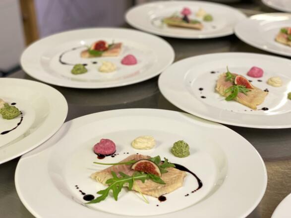 Genießen Sie eine Auswahl verschiedenster Fischvariationen von heimischen Fischen, die gekonnt in Kombination mit regionalen Produkten zu kulinarischen Spezialitäten veredelt werden. Dazu servieren wir hochwertige, eigens ausgesuchte Weinspezialitäten namhafter Winzer.