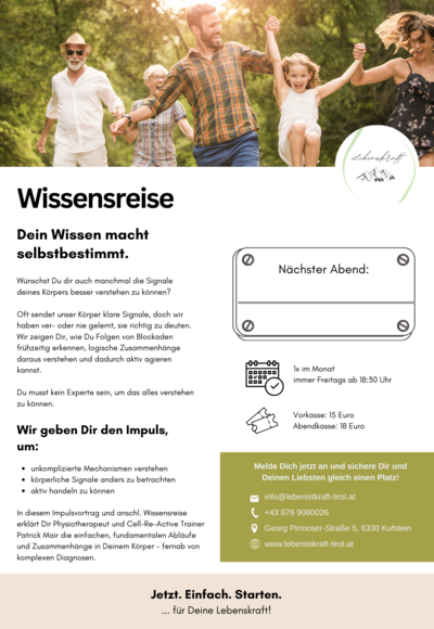Anmeldung: bis 11:00 Uhr am Veranstaltungstag online oder in den Infobüros der Region Hohe Salve