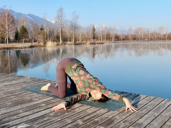 Für diese Yogaeinheit gehen wir in die Natur. Wir rollen die Yogamatte an einem besonders schönen Ort aus: Dem Badesee Reßnig im Rosental.