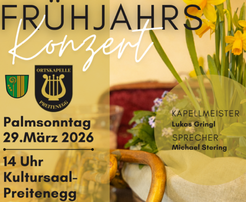 Die Ortskapelle Preitenegg lädt recht herzlich zum alljährlichen Frühjahrskonzert in den Kultursaal Preitenegg ein.