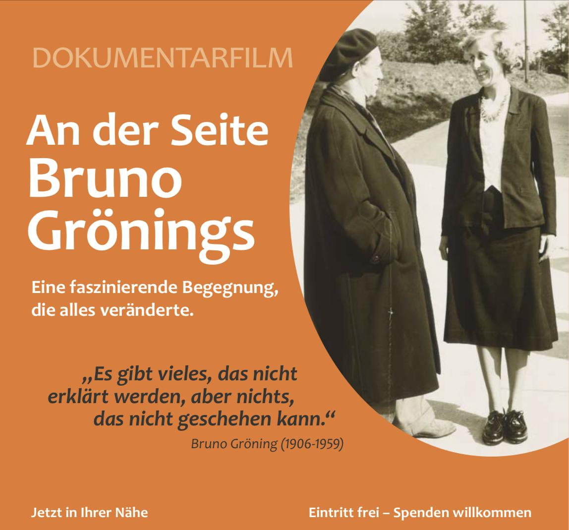 Dokumentarfilm Heilung ist möglich. Die wahre Geschichte von Bruno Gröning und Grete Häusler. Der Film An der Seite Bruno Grönings erzählt die bewegende Geschichte der Kärntner Lehrerin Grete Häusler, die in den 1950er Jahrenals misstrauische Kritikerin überraschend Heilung erfuhr und schließlich zur engen Mitarbeiterin wurde. Erleben Sie in 100 packenden Minuten Interviews, historische Filmaufnahmen und berührende Schauspielszenen, die das Wirken dieses außergewöhnlichen Mannes lebendig werden lassen. Bruno Grönings Botschaft wirkt bis heute - entdecken Sie jetzt, warum.