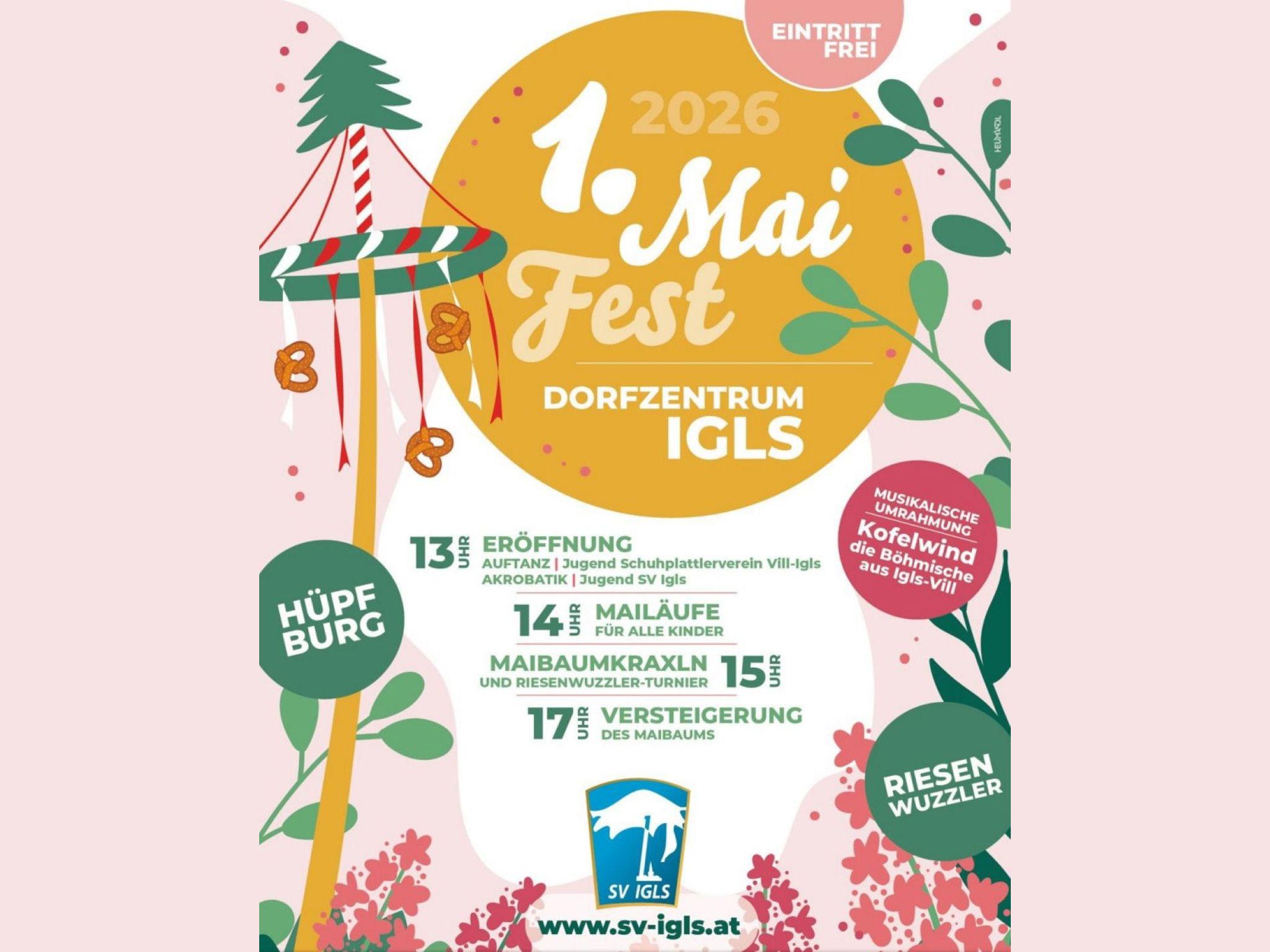 Das Maifest im Zentrum von Igls garantiert Spaß und Unterhaltung für alle! Am Programm steht Maibaum-Klettern für Kinder und Erwachsene, eine Vorführung der Jugendvolkstanzgruppe und der traditionelle Mailauf des Sportvereines Igls.