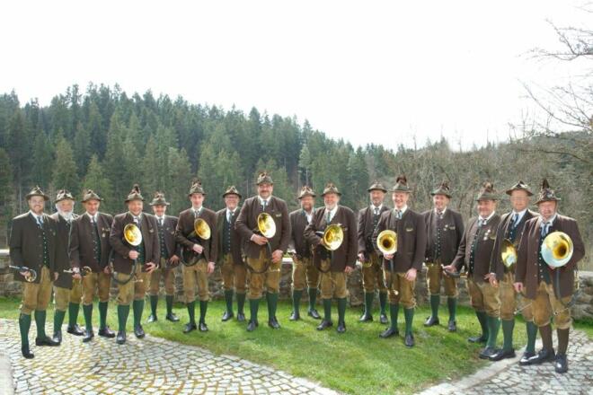 Musikalische Umrahmung durch die Jagdhornbläser Böhmerwald und gemütlicher Ausklang in der Mosthütte.