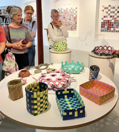 Zum Abschluss jeder Kurswoche werden die Ergebnisse aus den Workshops zusammengetragen und im Textilen Zentrum Haslach präsentiert. Diese gemeinsame Finissage ist sowohl für die Teilnehmer:innen der Kurse interessant, die während der Woche kaum Zeit haben, die anderen Kurse wahrzunehmen. Es sind aber auch Interessierte aus Nah und Fern eingeladen, zum Schnuppern zu kommen.