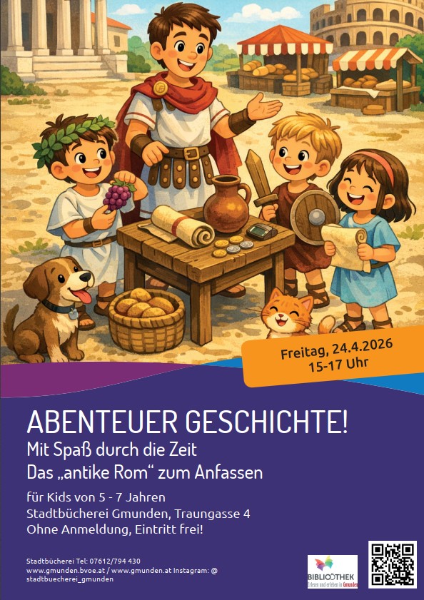 Höhle“ der Stadtbücherei Gmunden geboten. Junge Zeitreisende entdecken zum Beispiel, wie die