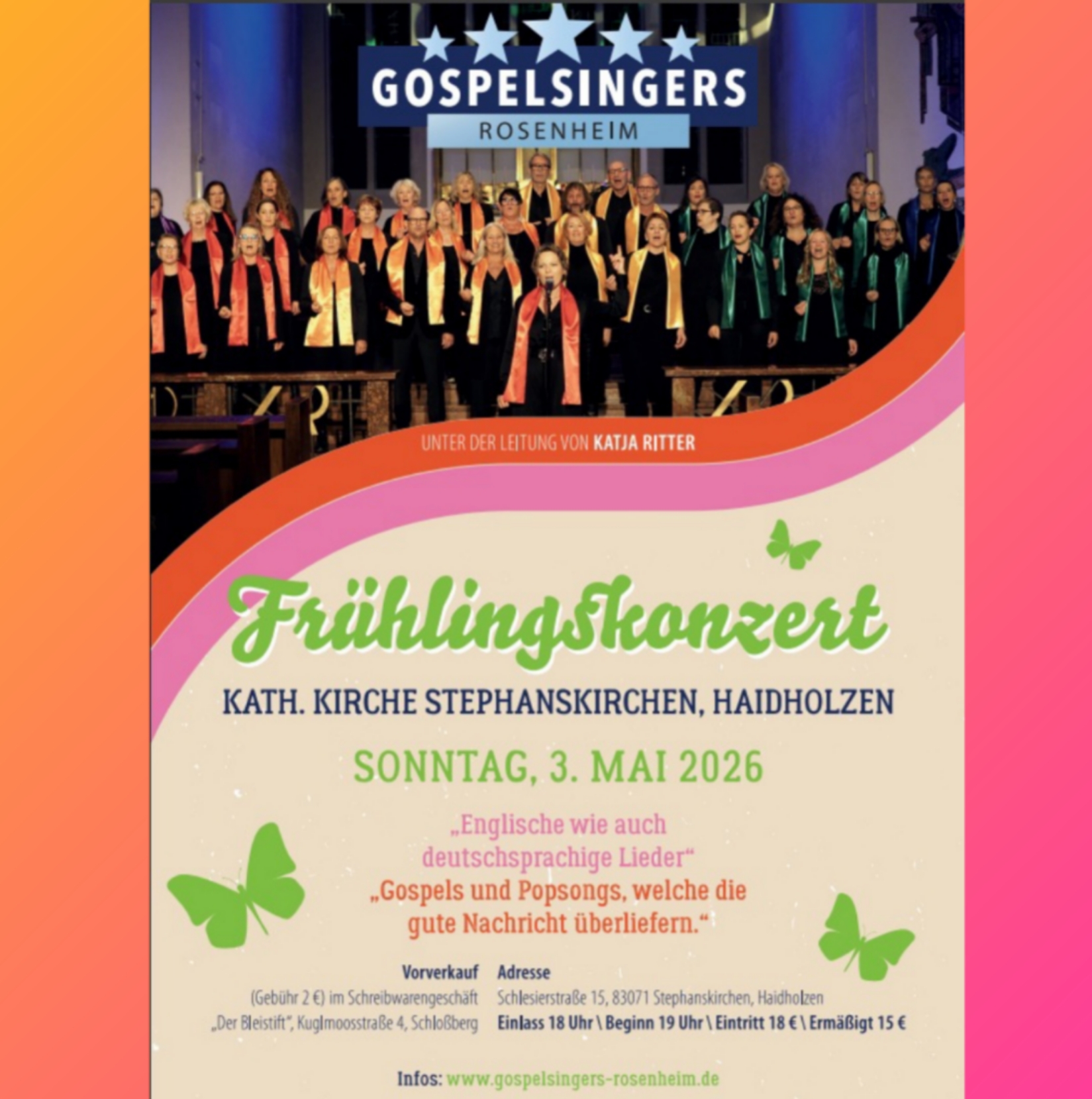 Nähere Informationen unter gospelsingers-rosenheim.de