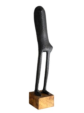 „Meine Kunst ist eine Reise der Selbstfindung und Heilung. Der kreative Prozess ist ein Moment der Transzendenz, in dem ich ein tieferes Gefühl der Erfüllung erfahre“, erzählt Ben Tuge, in Südafrika lebender, aus Simbabwe stammender Bildhauer, Jahrgang 1969. „Ich möchte Diskussionen und eine tiefere Verbindung zu meinen Betrachtern anregen und sie ermutigen, verschiedene Perspektiven zu erkunden. Die rauen Texturen meiner Skulpturen laden die Betrachter ein, das Werk aus verschiedenen Blickwinkeln zu betrachten und mit jedem Blick neue Erkenntnisse zu gewinnen. Meine Kunst ist eine Einladung zum Innehalten, Nachdenken und Weiterschauen.“ Man erwarte das Unerwartbare, und erfahre fragile Manifestationen des Seins. „Ich modelliere meine Arbeit zunächst im Kopf und stelle mir das fertige Stück vor, bevor ich das Holz berühre. Der Prozess ist meditativ, ein Tanz zwischen Schöpfer und Material. Ich genieße das Gefühl, das Holz zu meißeln, zu formen und zu veredeln und die verborgene Schönheit darin zum Vorschein zu bringen.“ Derart beschreibt Tuge den kreativen Prozess, ganz persönlich, ungeschönt und ohne Schnörkel.