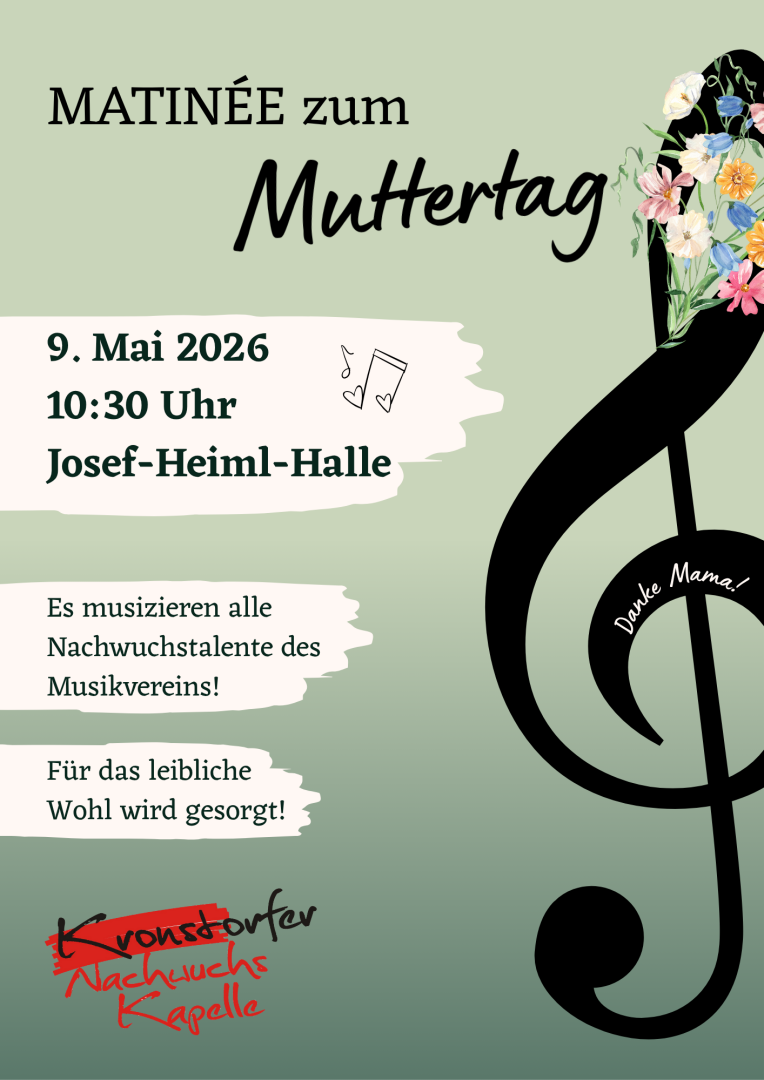 Die Kronstorfer Nachwuchskapelle lädt zur Matinée zum Muttertag in die Josef-Heiml-Halle ein.