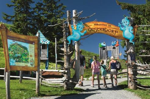 Am Geisterberg in St. Johann im Pongau heißt es in den Sommermonaten „Willkommen im Reich der lustigen Geister“. Über 40 große und kleine Spielstationen entlang der großteils kinderwagentauglichen Wanderwege machen den Geisterberg im Snow Space Salzburg zu einem der beliebtesten Ausflugsziele im Salzburger Land. Highlights sind das Geisterbergschloss, das Geisterdorf, Wasserspiele, Klettertürme, Schaukeln und zahlreiche Rutschen. Der Geisterbergzug, ein Traktorzug, bringt dich bequem einen Teil der Strecke von der Bergstation der Alpendorf Gondelbahn zum Zentrum der Geisterberg-Erlebniswelt.