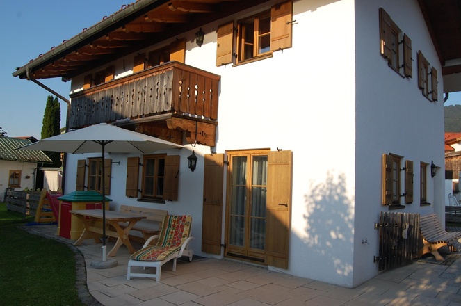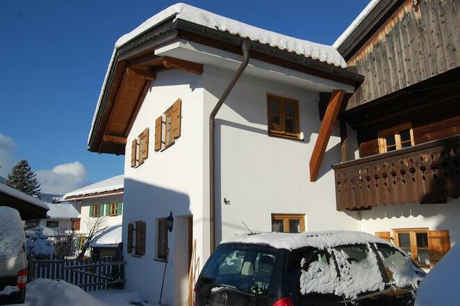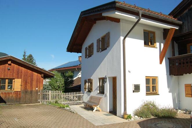 Gemütliches komplett eingerichtetes Reiheneckhaus in der Ortsmitte von Lenggries mit Garten und Bergblick in einer ruhigen Sackgasse. Direkt am Haus sind drei PKW Stellplätze verfügbar.