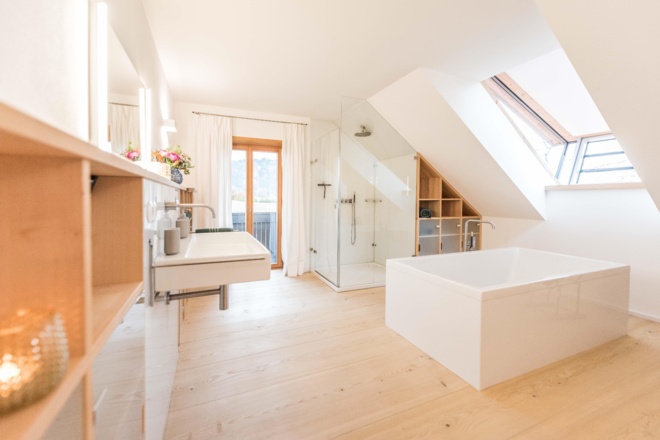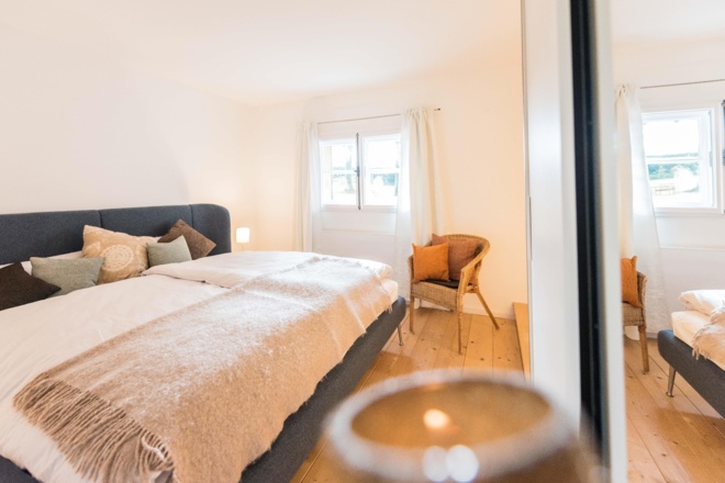 Das wunderschöne große Luxus-Ferienhaus besticht durch seine Lage, die Aussicht auf die Voralpen, den großen Garten, die Luxusimmobilie, eine große Küche mit Essbereich, 2 Bäder, extra WC, 5 Schlafzimmer, herrliche Glasgauben auf dem Dach, idyllische Plätze im Garten und entlang des Hauses. Top eingerichtet und super gemütlich. Eine idyllische Sauna mit Waldblick rundet das ganze Anwesen ab. Die Ferienwohnung im Nebengebäude ist wunderschön gemütlich. Sie besteht aus 3 Zimmern, alle mit Fenstern und dadurch sehr hell. In der gesamten Wohnung spürt man die liebevolle Einrichtung aus hochwertigen Materialien. Sauna mit Waldblick nutzbar. Wir freuen uns auf Sie! Ihre Familie Tien