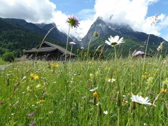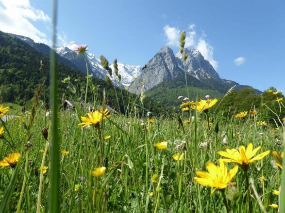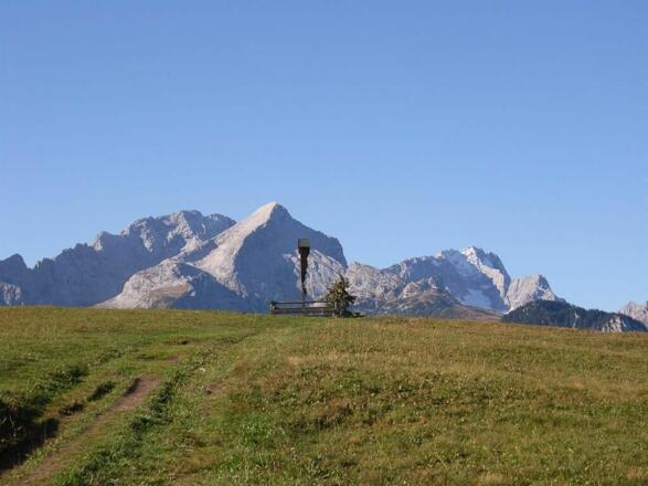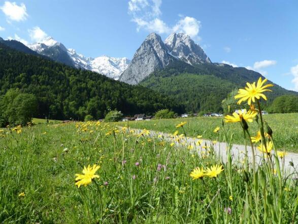 Einfamilienhaus mit einer schönen, gemütlichen Ferienwohnung. Von unserem Haus bietet sich ein herrlicher Ausblick über Wiesen auf die Berge. Wanderwege und Loipe beginnen direkt am Haus. Vom nahe gelegenen Zugspitzbahnhof erreichen Sie mit der Zugspitzbahn direkt die Zugspitze und andere Bergbahnen (Wander- und Skigebiet) ohne Auto.