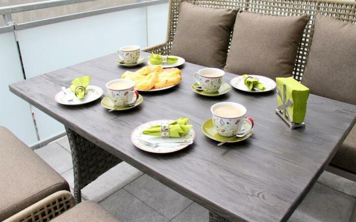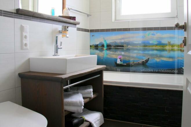DTV ***** Sterne Ferienwohung Königschlösser: Luxus zwischen Schloss und See; 52 qm² für 2 Personen, zentrale Stadtlage mit Schlossblick aus allen Räumen. Genießen Sie hochwertiges Wohnen mit Stein- Kaminoptik und Holzambiente im Landhausstil. Kostenfreies WLan, 12 qm Balkon mit Schlossblick - Sitzlounge - Liegestühle,Markise, Lift und Tiefgaragenstellplatz mit eigenem Abstellraum für Fahrräder oder Ski. Einkaufsmöglichkeiten in 3 - 4 min., Friseur Sun Hair im Haus EG.Zum Forggensee über die König Ludwig Promenade 10 min. Die Ferienwohnung ist im 2. Stock eines Neubaues mit Ost-Süd Ausrichtung.SonstigesInklusive: Bettwäsche, Handtücher, Nebenkosten und Reinigung;Exclusive: Kurtaxe.