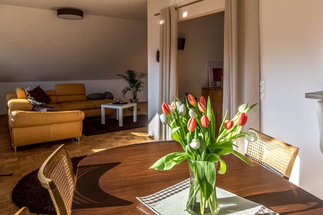 Schöne Ferienwohnung mit großem Balkon im Grünen für bis zu 4 Personen.