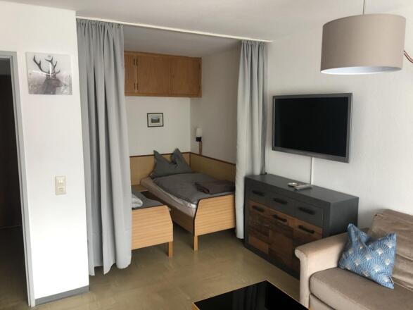 Es erwartet Sie ein privates Nichtraucher-Appartement, ca. 33 qm, in Walchensee. Sehr ruhig liegt es im 1. Stock einer kleinen Wohnanlage, ca. 50 m vom See entfernt, mit einem schönen großzügigen Südwestbalkon. Das Appartement ist mit Geschirr, Küchengeräten, Kleingeräten, Besteck, Kaffeemaschine, Toaster uvm. sowie TV, Radio etc. ausgestattet. Zum Schlafen sind 2 EB (1,00m x 2,00m) und ein Schlafsofa (1,40m x 2,00m) vorhanden. Die Betten lassen sich nicht zusammenschieben. Bettwäsche und Handtücher sind selbst mitzubringen. Das Haus verfügt über einen Einstellplatz für Fahrräder o.ä., einen Tischtennisraum, Skiablage, Waschmaschine und Trockner mit Münzgeldeinwurf sowie einen Trockenraum. Parkplätze sind vor dem Haus vorhanden, können aber nicht zugesichert werden.