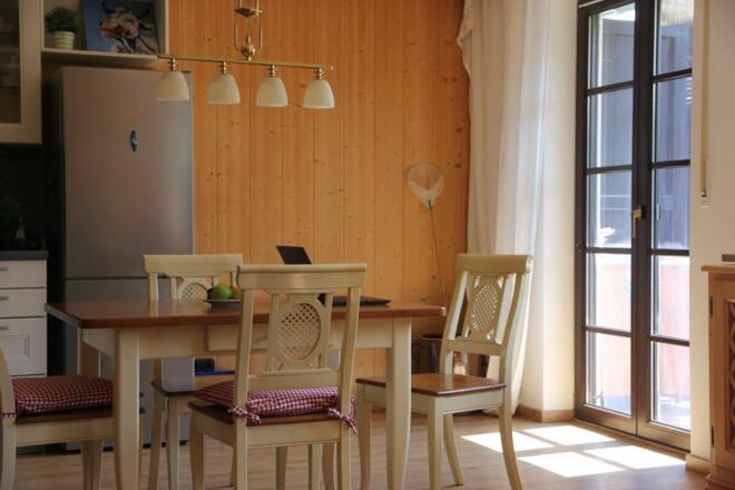 Die Ferienwohnung liegt im Ort Walchensee in einem Haus am See. Die 2-Zimmerwohnung ist 58 qm groß und liegt im ersten Stock mit Blick auf den See. Der hauseigene Garten liegt direkt am See mit Badesteg und Terrasse. Großes Wohnzimmer mit einem gemütlichen Schlafsofa und Fernseher Balkon mit Seeblick Moderne vollausgestattete Küche mit Esstisch und 4 Stühlen Schlafzimmer mit goßem Kingsize Bett Badezimmer mit Rainshower Dusche, Duschsitz, Waschmaschine mit Trocknerfunktion Pool und Sauna sind vorübergehend geschlossen entsprechend der aktuellen Corona Bestimmungen Bootsverleih, Angelladen und Restaurants sind nebenan. Freies W-Lan, Handtücher, frisch bezogene Bettwäsche und kostenloser Parkplatz inklusive.