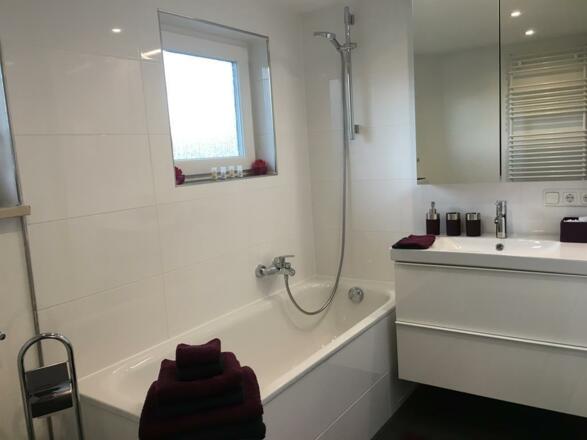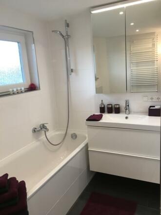 Die Unterkunft wurde komplett neu eingerichtet und verfügt u. a. über eine neue Küche mit Geschirrspüler, Mikrowelle, Ofen, Herd, Kaffeemaschine, Wasserkocher, etc. Hier steht für den täglichen Bedarf für Sie z. B. Öl, Essig, Salz, Pfeffer, div. Gewürze, Kaffee, etc. bereit. Im neu renovierten Bad mit Badewanne inkl. Duschwand sind Handtüchern, Hair- and Body-Shampoo, Bodylotion, sowie Wattepads, Ohrstäbchen und Feuchttücher zur kostenfreien Verwendung beinhaltet. Die Wohnung hat einen sonnigen Süd-Balkon inkl. Tisch und drei Stühlen. Bei mehreren Personen kann weiteres Mobiliar zur Verfügung gestellt werden. Grillmöglichkeit im Garten ist nicht standardgemäß vorgesehen, kann jedoch in Absprache mit dem Vermieter, der im gleichen Haus wohnt, in dessen Garten auf Anfrage genutzt werden.Zusätzliche Kissen, Bettdecken, Handtücher, Bettwäsche-Wechsel, Zwischenreinigung bei längeren Aufenthalten, Grillmöglichkeit, etc. sind in Absprache (teilweise gegen Gebühr) möglich.SonstigesInkl. Grundausstattung (s. Hausbeschreibung)!