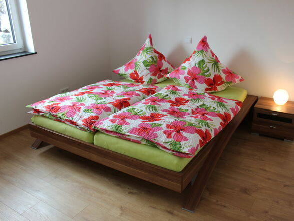 PKW-Stellplatz am Haus, elektrische Rolladen an allen Fenstern, Insektenschutz an Fenstern und Terrassentüre, Kindersicherung an allen Steckendosen, kostenloses Wlan und für die etwas größeren Personen: offenes Fußende am Bett.