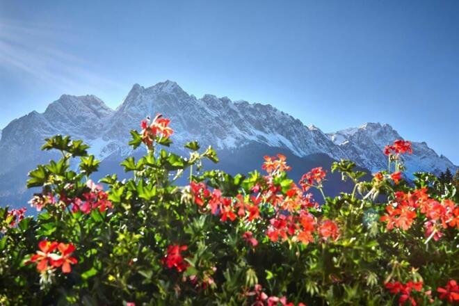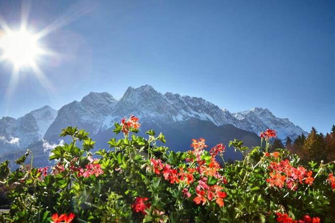 Herrlicher Ausblick zur Zuspitze, Alspitze und auf weitere Berge.