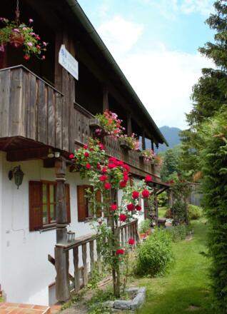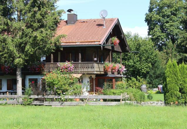 Etwas außerhalb Lenggries, ruhig und sonnig im Grünen liegendes freistehendes Haus mit: Wohnung "Falken": Einer großen Ferienwohnung im Dachgeschoß für 4 Personen mit zwei sepparaten Schlafzimmern, eines mit Doppelbett und eines mit zwei Einzelbetten; 2 Duschbad/WC's; Wohnküche mit voll ausgestatteter Küche, kleines Fernsehzimmer und zwei Privatbalkonen. Das Haus hat 5 Stellplätze vor dem Haus. Herrliches Wandern und Radfahren ab Haus.Wenige Minuten Autofahrt zum Skigebiet.
