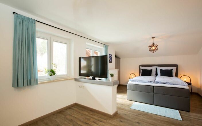 Unser Haus liegt, in bester Lage mit Bergblick, im Ortsteil Untergrainau. Unsere 2 modern eingerichteten Dachgeschoss Ferienwohnungen wurden in 2019/20 neu saniert .