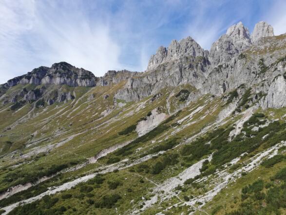 2. Wir wandern von der Hofpürgelhütte nach rechts und steigen über den Wastl-Lackner-Steig zu den Hofalmen hinab. Von dort aus können wir bis nach Filzmoos wandern oder mit dem Fidibus zurück nach Filzmoos fahren.