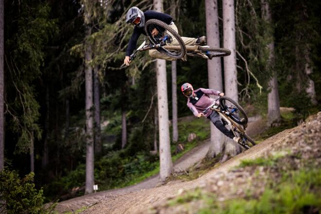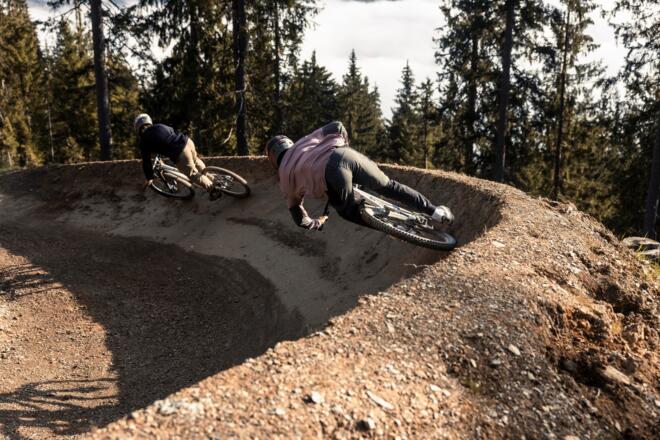Die Freeride Line für Alle schlängelt sich durch den Wald in Richtung Mittelstation Asitz. Der Flow Link lässt die freie Wahl – Airtime oder doch am Boden bleiben – und ist gespickt mit variablen Takeoffs, Step-downs, Tables und Steilkurven – je nach Linienwahl fahrbar für Biker aller Könnerstufen.