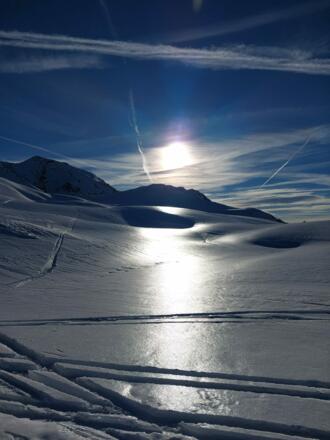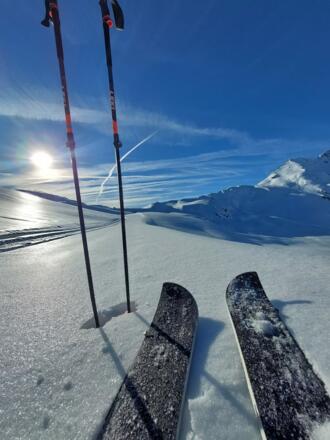 Eine wundervolle Skitour über die "Schwarze Pfanne", hinauf zum Tuxer Joch und weiter zur Frauenwand. Bei unsicheren Verhältnissen sehr zu empfehlen, da man sich nie in gefährlichen Gelände befindet. (anders als der Aufstieg über das Weitental).