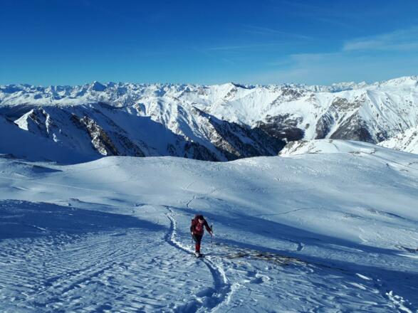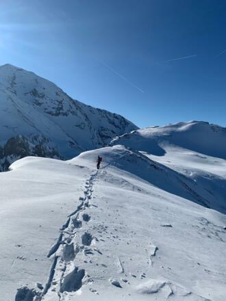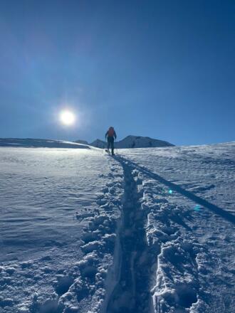 Aufgestiegen werden kann direkt über die Piste oder daneben durchs Gelände.