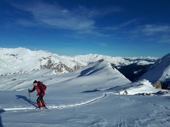 Eine wirklich sehr schöne Tour erst nahe der Pisten und später recht abgelegen über tolle Schneefelder abseits des Trubels.