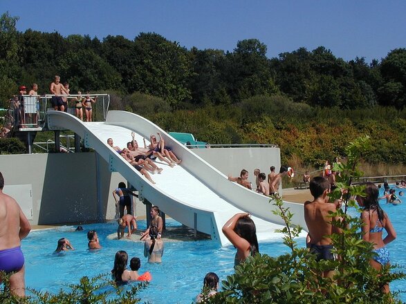 Ein Nichtschwimmer und wettbewerbsgerechtes Schwimmerbecken, die Sprunganlage und 60 m Wasserrutsche, ein Kinderplanschbecken, umfangreicher Erlebnis-, Sand- und Matschbereich, der Beachvolleyball-Platz mit original Beachsand, Rasenspielfeld und vieles mehr lassen bei Groß und Klein keine Wünsche offen