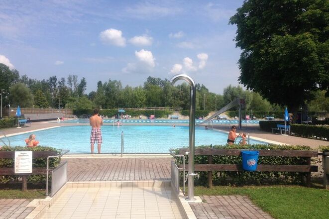 Das Freibad in Kolbermoor bietet drei Schwimmbecken, eine Rutsche, Tischtennis und einen Kicker. Der Kiosk versorgt alle Gäste mit kalten Getränken.