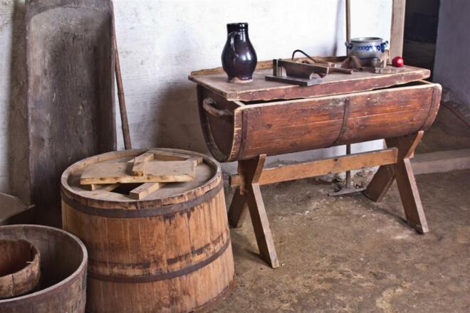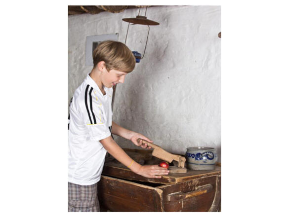 Er wurde bis 1953 bewirtschaftet und ist mit den in der vorindustriellen Zeit üblichen Werkzeugen und Arbeitsgeräten ausgestattet.