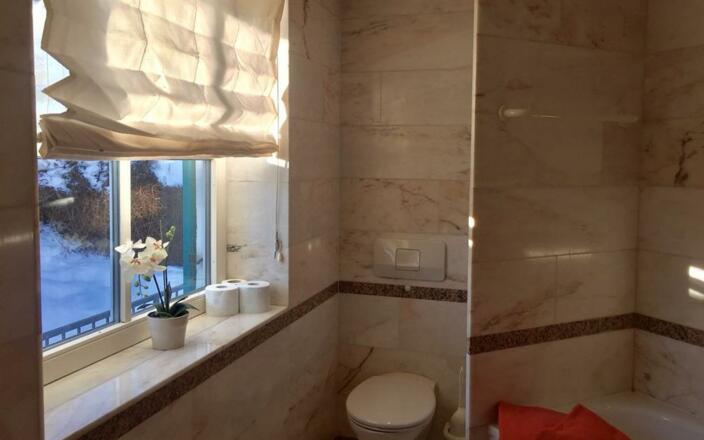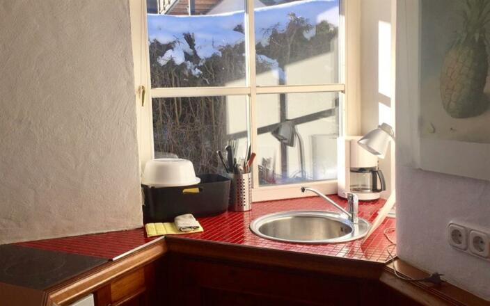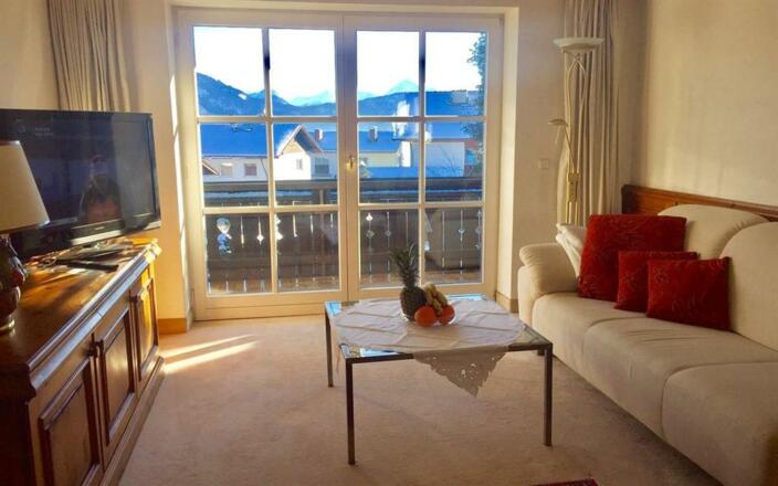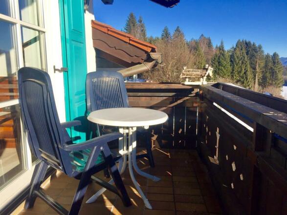 Unser Haus liegt am Enzensberg im Höhenbereich der Fachklinik. Die Aussicht vom Balkon bietet einen traumhaften Berg-und Schlossblick.