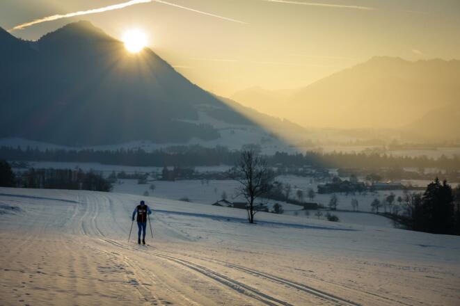 Praktisch ist ein kleiner Rucksack für Regenschutz, Wärmejacke, Sitzkissen, Thermoskanne mit Heißgetränk, Brotzeit oder zumindest ein Müsliriegel, Erste-Hilfe-Set, Handy und der Loipenplan aus der Tourist Info.