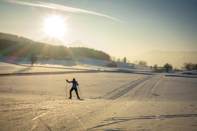 Die Froschsee-Loipe startet mit einem kurzen, aber sehr steilen Anstieg über den Weiler Gnaig. Oben angekommen breitet sich ein freundliches Hochtal aus und die Strecke verläuft idyllisch zum kleinen Froschsee. Nach Umrundung desselben schließt das Inzeller Skiwandernetz an oder man läuft wieder gemütlich zurück nach Ruhpolding.