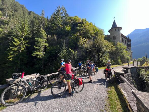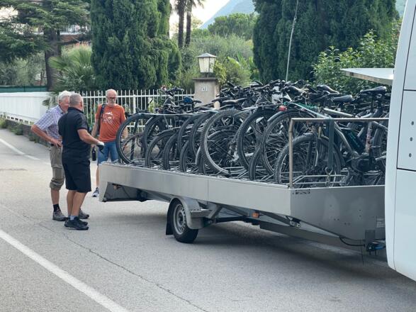 Etappenvorschläge für Transalpin Füssen-Gardasee: Tag 1: Füssen nach Biberwier (Halbtagestour = Zeit für Anreise) Tag 2: Biberwier -Fernpass- nach Umhausen im Ötztal Tag 3: Umhausen nach Obergurgl Tag 4: Obergurgl -Timmelsjoch- nach Meran Tag 5: Meran nach San Michéle Tag 6: San Michele nach Arco und Riva del Garda Die erste Etappe startet am Bahnhof und führt hinunter an den Lechfall und kommt auf den Lechtalradweg und die Via Claudia Augusta (VCA). Auf der Pinswanger Straße gelangen wir nach Hüttenbichl und im weiteren Verlauf nach Reutte. Dem Radweg folgend bietet sich im Heiterwanger See ein Badestopp an. Kurz vor Lermoos ist dann ein Fotostop angesagt: Radfahrer vor Zugspitze! Kurz darauf biegen wir nach Süden in Richtung Biberwier ab. Im Hotel „My Tirol“ hat man vom Schwimmbad aus Blick auf die Zugspitze, die Räder kann man mit aufs Zimmer nehmen und das Buffet abends ist spitze. Am nächsten Tag fährt man weiter auf der VCA/R8 zur Fernpassstraße, die man auch überquert. Die Strecke verläuft jetzt auch auf einem Wanderweg, dem Römerweg, einem Holzplankenweg. Auf Teilabschnitten soll man hier schieben. Achtung: Abfahrt hier etwas luftig! Ab dem Fernsteinsee wieder normaler Radweg. In Nassereith kleiner Angelsee mit schöner Rastmöglichkeit. Man folgt weiter am Waldrand der VCA in Richtung Imst, dass man aber rechts liegen lässt. Untermauerung der A12 und Überquerung des Inn nach Osten abbiegen und auf dem Innradweg bis Waldeler Feld und auf dieser Uferseite bleiben. Der Radweg führt durch Mairhof und Ötzbruck. Man überquert nicht die Ötztaler Ache, sondern biegt nach Südosten ab und fährt am Ufer der Ache den Ötztalradweg. Nach dem großen Freizeitbad überquert man die Ache und folgt dem Ötztalradweg oder dem Track bis nach Umhausen. Hotel Explorer ist empfehlenswert. Die dritte Etappe führt auf dem Ötztalradweg bis Sölden, dann geht es auf die Straße und hinauf nach Obergurgl. Hier nicht ganz so viele Übernachtungsmöglichkeiten im Sommer. Sölden bietet da mehr. Die vierte Etappe führt wieder auf der Straße von Obergurgl über Hochgurgl. Am Motorradmuseum ist die Mautstelle. Hier gibt es einen Aufkleber für Radfahrer kostenlos. Jetzt folgt eine grandiose Auffahrt bis zum Timmelsjoch, die sich fortsetzt in einer sehr langen Abfahrt nach Moos in Passeier. Hier mal eine Verschnaufpause einlegen. Auf der Straße fährt man weiter bis St. Leonhard in Passeier. Schöner, kleiner Ort für eine Kaffeepause im Zentrum. Von hier aus befährt man den Passeier Radweg am Ufer der Passer entlang bis Meran. Tag fünf beginnt in Meran und rollt am Ufer der Etsch, der Etschtalroute entlang Richtung Bozen. Kurz vor Bozen sieht man schon auf der anderen Uferseite auf der Anhöhe Sigmundskron, das Messner-Mountainmuseum, twas überzogene Eintrittspreise! Nach etwas Kulturprogramm weiter auf der Etschtalroute bis San Michéle. Das nächste Highlight dieser Transalp bildet die letzte Etappe über den Molvenosee. Dafür verlässt man San Michéle nach Nordwest über Mezzocorona bis zur Abfahrt auf die SS421 nach Andalo und Molveno. Zunächst steile Auffahrt auf enger Straße, im weiteren Verlauf etwas abflachend und breiter. Ab Andalo beginnt die Abfahrt zum Molvenosee. Hier gibt es tolle Bademöglichkeiten und ein beeindruckendes Brentapanorama. Weitere Abfahrt auf der SS 421 bis zur Sarca, dann links abbiegen auf die SS237 nach Sarche. Nach ca. 2 km linksseitig der Straße ein Radweg. Den muss man nehmen, da man die Tunnel nicht durchfahren darf. Nächsten Fotostop bietet die Sarcaschlucht. Die letzten drei Serpentinen fährt man wieder auf der Straße, überquert den Fluss und biegt gleich rechts auf den ausgeschilderten Radweg ab. Radwegbeschilderung folgen bis Arco, der Sarca folgend nach Torbolé und schließlich am Ufer des Gardasees nach Riva des Garda.