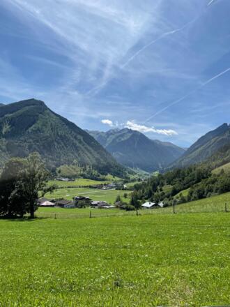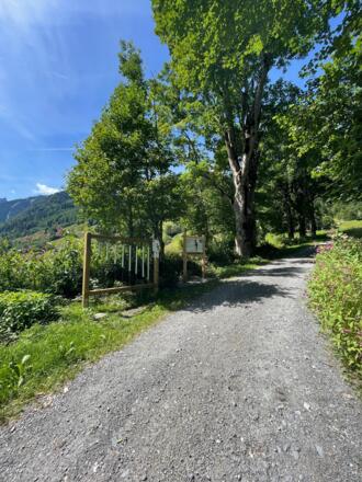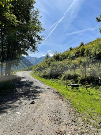 Bei der Kreuzung gehts dann nach links. In dem kleinen Waldstück dann wieder die linke Spur nehmen bevor es dann ca. 100 m über einen breiten Forstweg zum höchsten Punkt geht. Hier hat man durchgehend eine tolle Aussicht über Fusch und die umliegende Bergwelt.