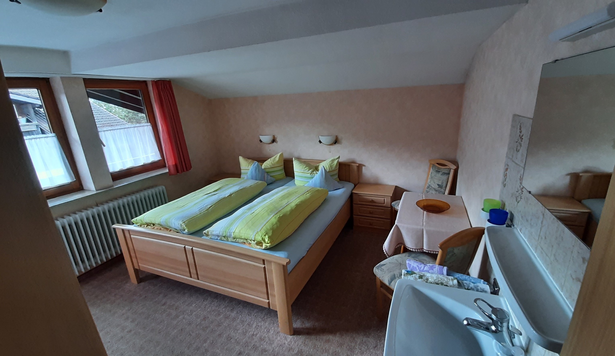 Ruhig gelegen, aber dennoch mitten im Zentrum von Oberstdorf bietet Ihnen unsere schöne Ferienwohnung genügend Platz für 4 Personen. Sie verfügt neben 2 separaten Schlafzimmern mit jeweils einem Doppelbett über eine gemütliche, voll ausgestattete Wohnküche. Das Bad ist mit Dusche, Badewanne, Waschbecken und WC ausgestattet, zusätzlich ist ein separates WC vorhanden. Die Küche und ein Schlafzimmer verfügen über einen Balkon zur Ostseite mit herrlichem Bergblick. Das 2. Schlafzimmer hat einen Südbalkon.WLAN vorhanden3 Supermärkte ( Lidl, Edeka, Feneberg ), Apotheke und Bäcker sind zu Fuß in weniger als 5 Minuten zu erreichen. Den Bahnhof so wie die Fußgängerzone erreichen Sie ebenfalls in ein paar Minuten.Von Mai bis Oktober können die Bergbahntickets kostenlos vor Ort dazu gebuchtwerden.Bei Fragen rufen Sie uns einfach an oder schicken Sie uns unter gaestehaus@frimmer.de einfach eine E-Mail!Wir freuen uns, Sie als Gast in unserem Hause begrüßen zu dürfen!