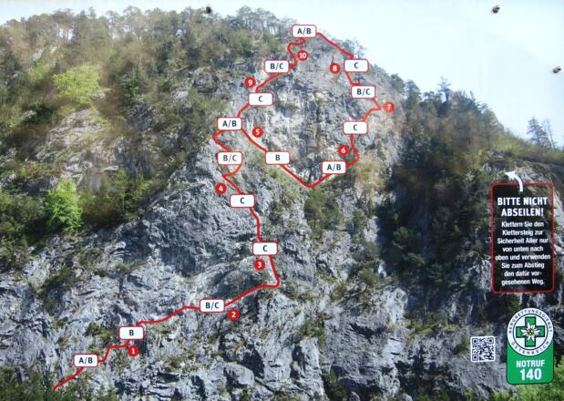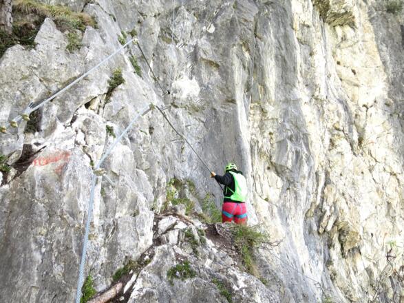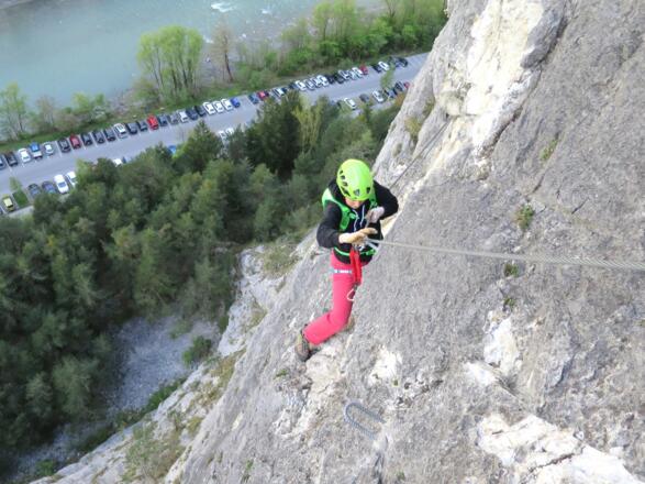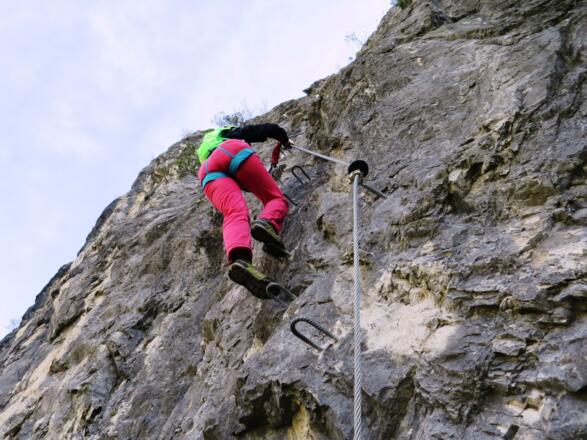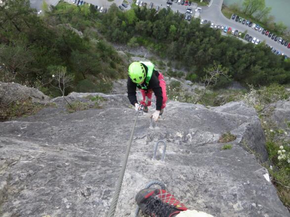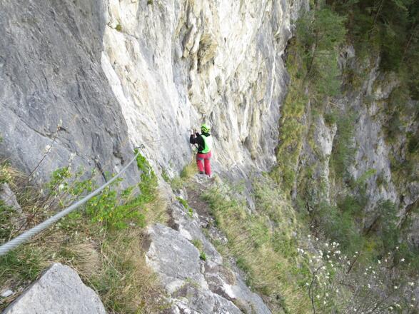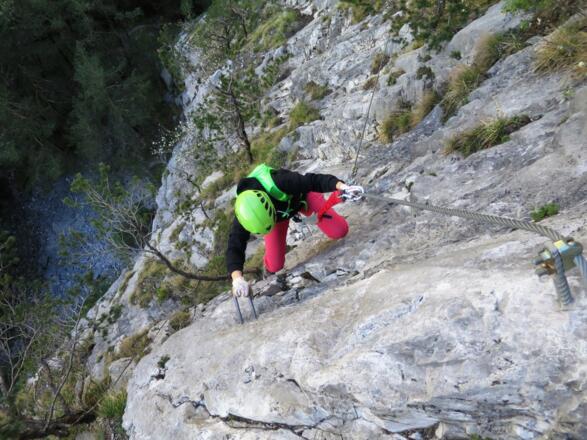 Vom Parkplatz am Talboden aus in wenigen Minuten zum Einstieg: kurz, knackig, im mittleren Schwierigkeitsbereich - durch seine NW Ausrichtung auch etwas für heiße Tage.