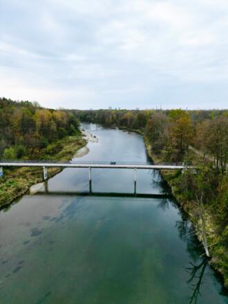 GENIESSE entlang der Tour den wunderschönen Blick vom Stauwehr aus auf die Isar und das Wasser, welches gemächlich vom Süden auf den Damm zufließt und dadurch ein Gefühl von Frieden und Ruhe vermittelt.