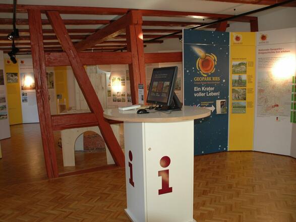 Geopark Ries Infozentrum beim Rieskratermuseum Informationen über Geoparke im Allgemeinen und den Geopark Ries im Speziellen. Insbesondere werden Themen wie die Entstehenungs- und Besiedlungsgeschichte