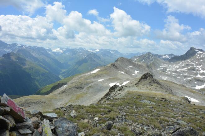 Der Weg führt nun unterhalb der Vertineskopf weiter bis zum Vertinespleiskopf und bietet einen schönen Ausblick ins Verwall.