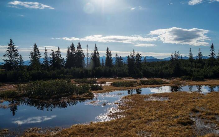 Völlig aus dem Häuschen gerät der Bergliebhaber bei der Sonnenroute auf den grünen Berg. Der Regionalbus 521 fährt vom Bahnhof Eben im Pongau ab Richtung Filzmoos. Die Haltestelle Schattbach ist beinahe gleichzeitig die Einstiegsstelle zu dieser, etwas anspruchsvolleren Wanderung. Beim Aufstieg streift man einige kleine Moore, die als ökologisch sehr wertvoll eingestuft werden. Nicht zuletzt deshalb wurde der 1728 m hohe Gerzkopf in den Salzburger Schieferalpen 2006 zum Europaschutzgebiet erklärt.