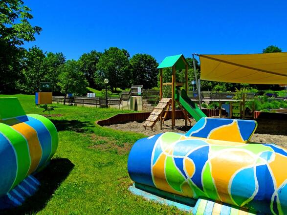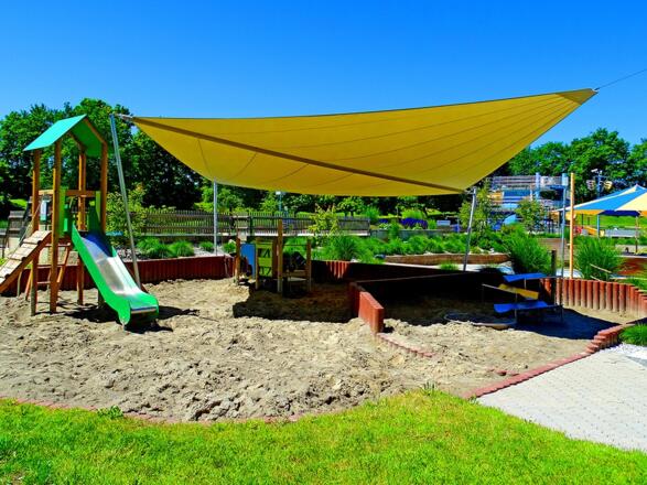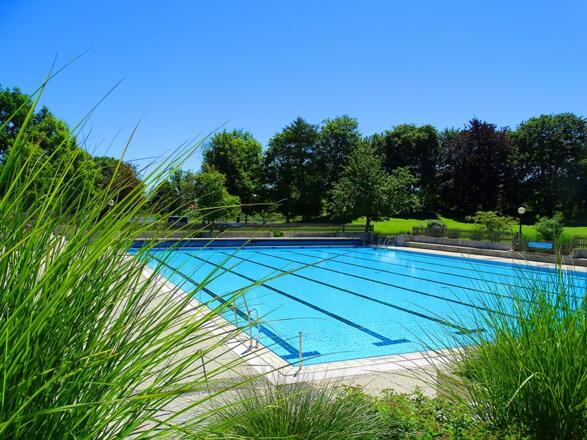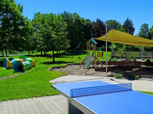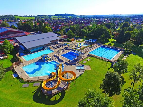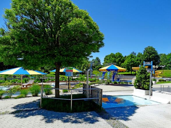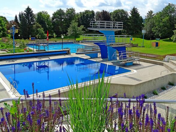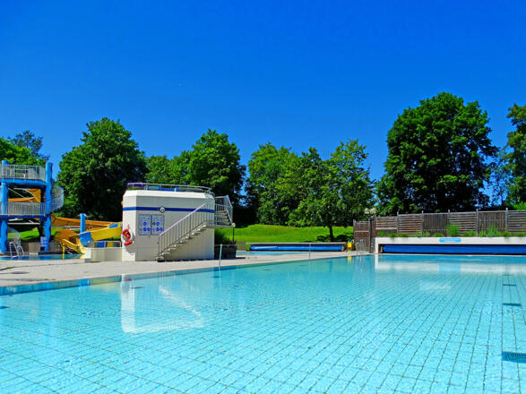 Genießen Sie den Sommer mit der ganzen Familie in unserem Freibad, dies hat einiges zu bieten. Im Spaßbecken kommt keiner zu kurz, egal ob Sie sich nur erfrischen möchten oder ob Sie eine rasante Fahrt mit der Riesen-Wasserrutsche oder den zwei kleineren Rutschen machen. Ausdauerschwimmern bietet das Sportbecken (25 Meter) mit acht Bahnen genügend Platz, um ihre Bahnen zu ziehen. Außerdem können Sie hohe Sprünge von unserer Sprungturmanlage (1 Meter, 3 Meter, 5 Meter) wagen. Die Kleinen kommen im Kinderbecken voll auf ihre Kosten. Dieses Becken mit geringer Wassertiefe ist mit einem Wasserpilz, Sprudel und einer kleinen Rutsche ausgestattet. Das Nichtschwimmerbecken lädt nicht nur Nichtschwimmer zum Plantschen und Verweilen ein. In diesem Becken kann sich jeder, der möchte, bei niedriger Wassertiefe schön erfrischen. Und wenn Sie sich eine Pause vom Wasser gönnen und lieber etwas an Land machen möchten, nutzen Sie doch unseren Beachvolleyballplatz oder Bolzplatz, spielen Sie Tischtennis oder testen Sie die Slackline. Kinder können sich auf dem großen Spielplatz mit UV-Sonnensegel austoben. Oder genießen Sie den sonnigen Tag einfach entspannt auf unserer gepflegten und großzügigen Liegewiese. Natürlich ist auch für das leibliche Wohl gesorgt. Bei unserem Kioskbetreiber erhalten Sie unter anderem Kaffee, Kuchen und Erfrischungsgetränke aller Art, Eis am Stiel, Currywurst, Schnitzelsemmel, Wurstsalat sowie – für ernährungsbewusste Badegäste – drei verschiedene Salatteller. Das alles können Sie auf zwei separaten Terrassenbereichen genießen.