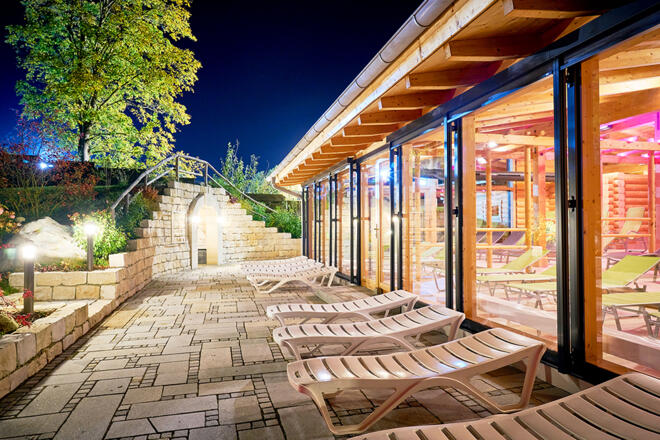 Als Ort der Entspannung und der inneren Ruhe stärkt ein Saunagang nicht nur das Immunsystem sondern wirkt sich positiv auf Körper und Geist aus. Gesundes Schwitzen verlangsamt Alterungsprozesse, trainiert die Gefäße, lockert verspannte Muskeln, hilft dem Körper zu entschlacken und wirkt insgesamt entschleunigend. Regelmäßiges Saunieren tut einfach gut und hat positive Effekte auf Gesundheit und Schönheit! Es erwarten Sie fünf unterschiedlich temperierte Saunen, darunter eine Finnische-Blockhaus-Sauna (optisch dem historischen Bergwerk in Peißenberg angelehnt) mit Saunagarten und Stollendusche, eine kleine finnische Sauna, eine Biosauna, ein klassisches Dampfbad und eine Infrarotsauna – insgesamt rund 1.500 m², die zum Schwitzen und Entspannen einladen. Ein abwechslungsreiches Aufgussprogramm ergänzt das Angebot. Nach den Saunagängen und dem Abkühlen unter der Stollendusche oder im Tauchbecken relaxen Sie auf bequemen Liegen in unseren Ruheräumen, zum Teil mit Panoramablick in den Saunagarten. Nutzen Sie auch das vitalisierende Fußbecken. Jeden Dienstag gehört die Saunalandschaft (abgesehen vom Personal) übrigens ganz der Damenwelt, die bei unserer beliebten „Damensauna“ mal unter sich sein können.