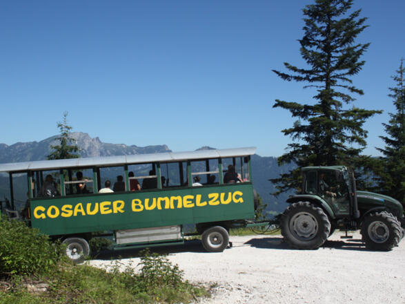 Die Auffahrt beginnt mit dem Bummelzug oder Almtaxi und führt durch eine Entdeckungsreise von 2 Naturschutzgebieten. Die geführte Wanderung führt vorbei an den Schleifsteinbrüchen zum Hochmoor des Löckenmoors, danach fährt man weiter zur Plankensteinalm. Die Tour geht weiter zur Geißwand mit einem großartigen Panoramablick über Hallstatt und Obertraun.