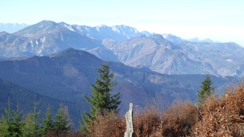 Am Almkogel beginnt dann die Wanderung über den Dürrensteig. Genießen Sie die Aussicht, weit in den Nationalpark hinein. Der Streckenabschnitt zwischen dem Almkogel und der Langlackermauer bietet den schönsten Panoramablick der gesamten Region: Nationalpark Kalkalpen mit dem Reichraminger Hintergebirge und dem Sengsengebirge, Totes Gebirge und Haller Mauern auf der einen Seite, Ennstaler Alpen mit Nationalpark Gesäuse bis zum Ötscher und weit ins Alpenvorland bis ins Mühl- und Waldviertel auf der anderen Seite.