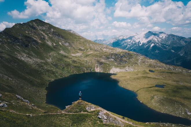 Herrliche Aussicht in die Lungauer Bergwelt, hinunter zum Twenger Almsee und in nördlicher Richtung zum Oberen und Unteren Schönalmsee.