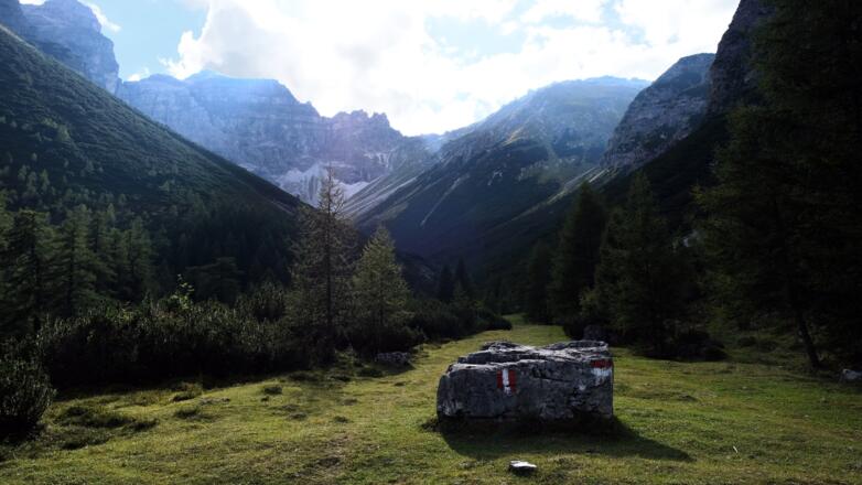 Vom Parkplatz nahe dem Gasthof Waldesruh gehts zuerst nach Hinterenns, einen verlassenen, wunderschönen Talkessel, umringt von den abweisenden Wänden von Tribulaun und Schwarzer Wand. Von Hinterenns führt dann ein schmaler Steig auf der Südseite hoch zur Inneren Wildgrubenalm, einsam gelegen auf einen kleinen Hochplateau. Hier gelangt man auch auf den vom Nösslachjoch kommenden Panaromaweg, der sich leicht ansteigend am Bergkamm entlang bis zum Gstreinjöchl hochschlängelt, immerzu im Angesicht der hohen Wände des Tribulaunmassives. Belohnt wird man am Ziel der Tour mit einem tollen Blick über das Obernberg- und hintere Gschnitztal, auch die markanten Gipfel von Eisenspitze, Gschnitzer- und Pflerscher Tribulaun werden sichtbar. Wer sich noch bei Kräften wähnt, der kann auch einen Abstieg zur auf der anderen Talseite liegenden Tribulaunhütte erwägen, die gut 500 hm tiefer liegt - auch eine generelle Überschreitung des Gstreinjöchls nach Gschnitz bietet sich als lohnende Alternative an.